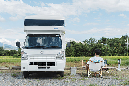 RVパーク内は豊かな自然に囲まれており、春・夏は田園風景、冬は雪景色が楽しめます。上田菅平インター・上田市内まで車で15分、多くの観光地もあり、拠点・中継地として行動できる位置にあります。また、パーク内には、サウナ、ゲストハウス、キャンプショップ、パンケーキ屋さんがあり、仲間と一緒にここでしか味わうことのできない体験をすることができます。